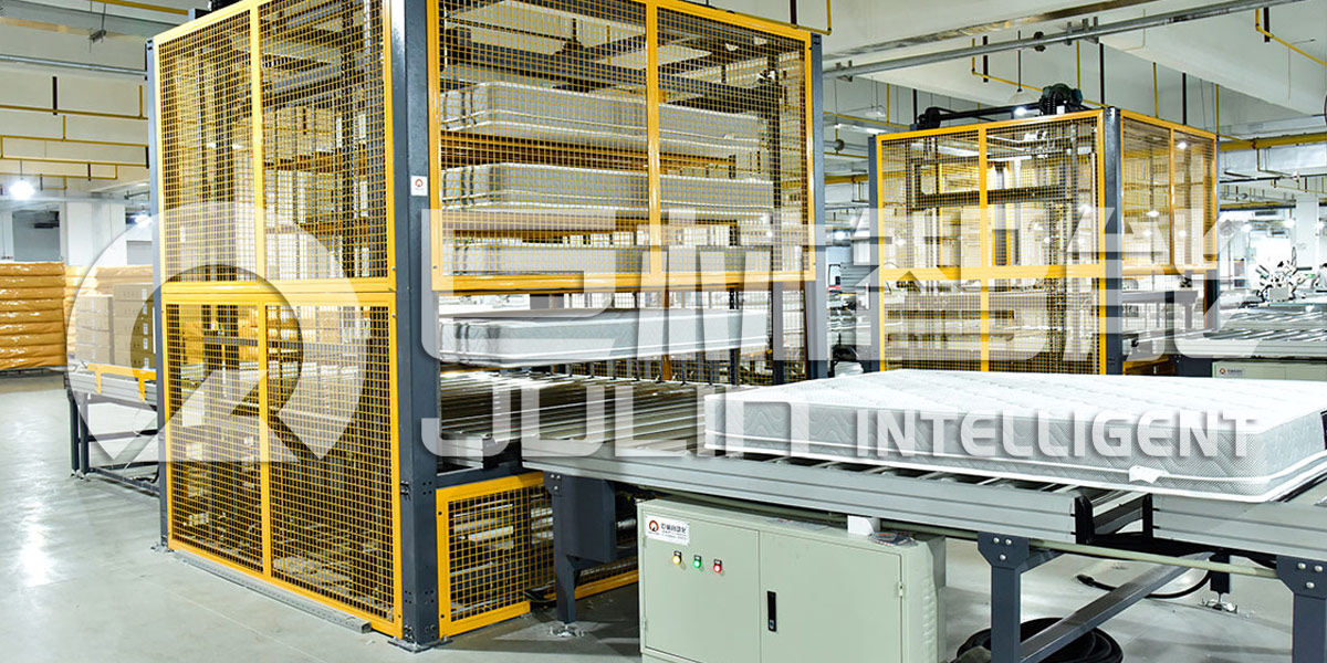 巨林智能床垫自动存储机主要用于存储生产中的床垫,可定制上下往复式自动储存输送。