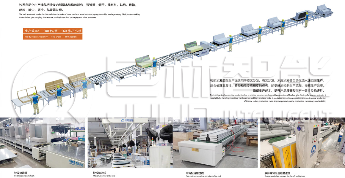巨林智能提供全球先进的沙发智能装配生产线方案及沙发自动化生产设备,目前在顾家家居上市公司各工厂应用广泛,性能稳定,使用方便,易操作,规范标准,生产效率高!