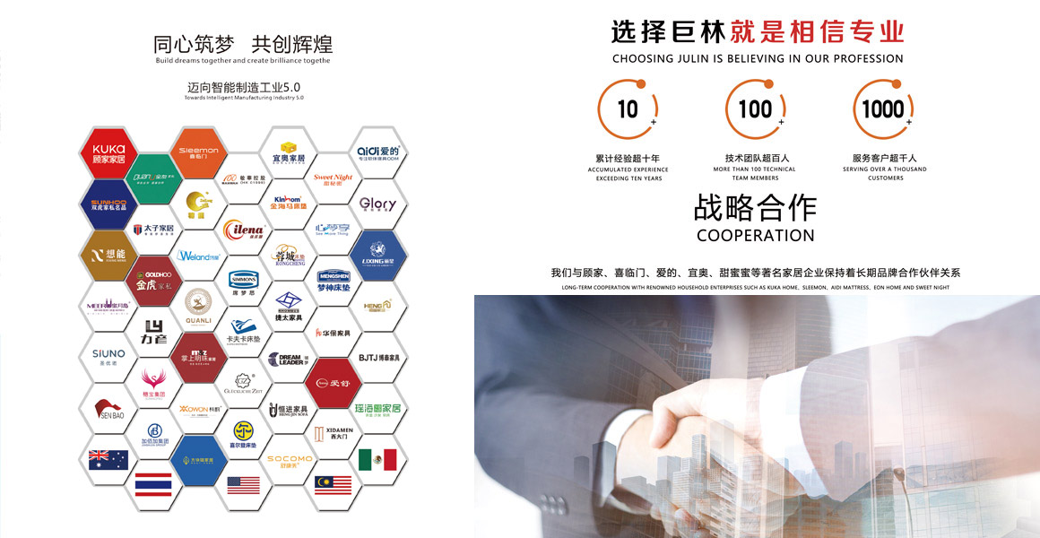 巨林自动喷胶机有效降低原材料和人工成本,精准控制喷胶量可充分节约胶水;自动化程度高,可走直线、弯曲等喷胶轨迹,提高生产效率;产品质量高,减少人工可能造成的误差;智能化程度高,大大提升了床垫品牌的知名度。