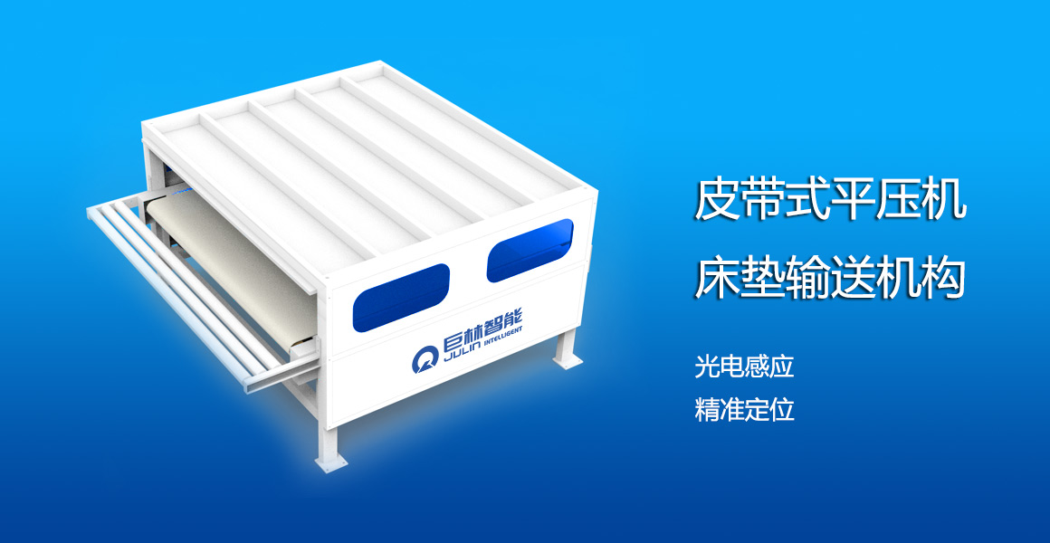 巨林智能床垫翻转压平机有翻转主体、上料装置、垛料夹紧机构、控制管路、液压系统、电气控制台、操作系统、安全围栏等组成,能适应不同规格的软床的翻转压平要求,安全、平稳、有效地提供工艺输送,实现正面转换成反面或将反面转换成正面的作业目标。