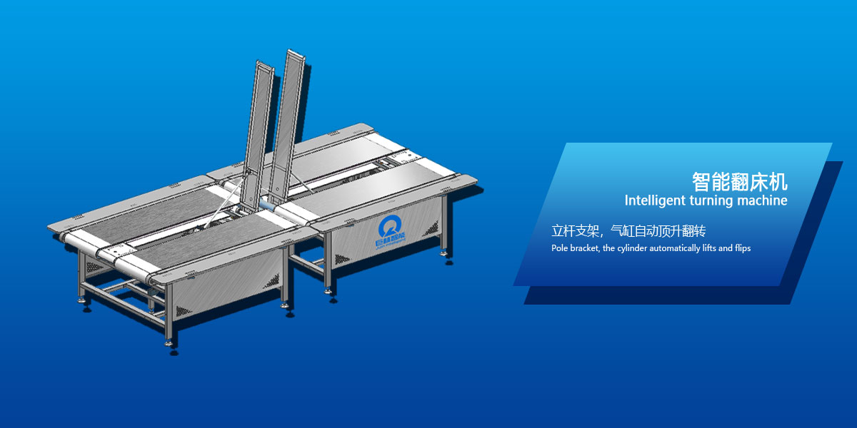 巨林智能床垫专业设备上下皮带翻转机,可根据生产需求灵活调节床垫上下走向,提高分拣效率,能适应不同规格的软床的翻转要求,安全、平稳、有效地提供工艺输送。