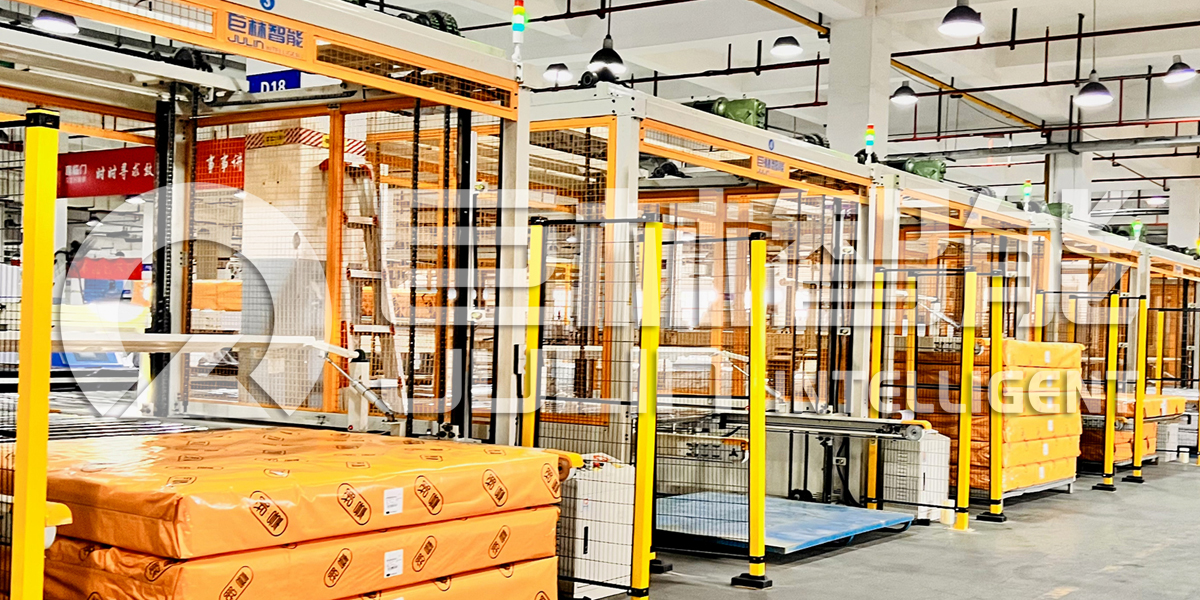 巨林智能床垫自动存储机主要用于存储生产中的床垫,可定制上下往复式自动储存输送。