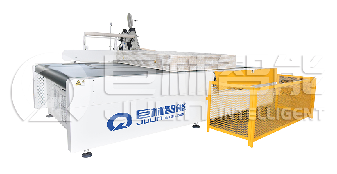 巨林智能床垫专用双层围边机,主要用于弹簧床垫上下面料与侧面料之间的边锋,也适用于其他软垫床褥、睡袋、帐篷的缝制。
