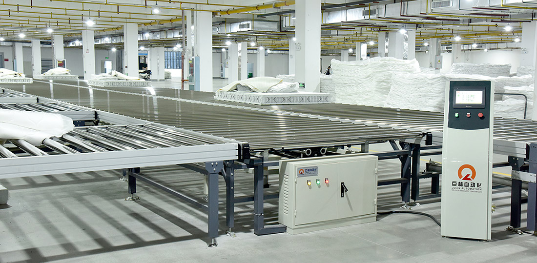 床垫传送主要有滚筒和皮带输送,其中不锈钢滚筒输送线使用寿命长,采用光电感应、超静音自动传输,分段式控制,有床垫时智能启动传送,没床垫或者拥堵排队时停止,PLC集中控制,输送床垫快速高效精准力量大,能承受较大的载荷。