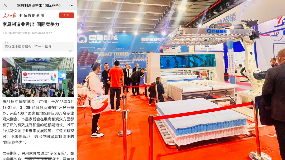 ![]() 2023年3月28日迎来了疫情后首场万众瞩目的智能软体家具·床垫自动化设备展览会! ![]() 巨林智能总经理林总热情接待了众多海外国际友人及国内家具行业精英! ![]() 本届《第51届中国广州国际家具生产设备及配料展览会》现场参观的专业采购商创五年新高,疫情过后,政策放开,也迎来了大量国外客户前来寻找需求与商机,人民日报特别报道。 ![]() 巨林智能床垫自动化生产设备在智能软体家具机械设备行业遥遥领先,精湛的技术研发实力,以及十多年坚持不断的为国内外大型品牌床垫工厂持续提供先进的自动化床垫生产线解决方案,赢得行业龙头一致好评和信任。 ![]() 浙江巨林智能专业为全球软体家具工厂提供各种床垫、沙发、软床等智能化、自动化生产线解决方案! |