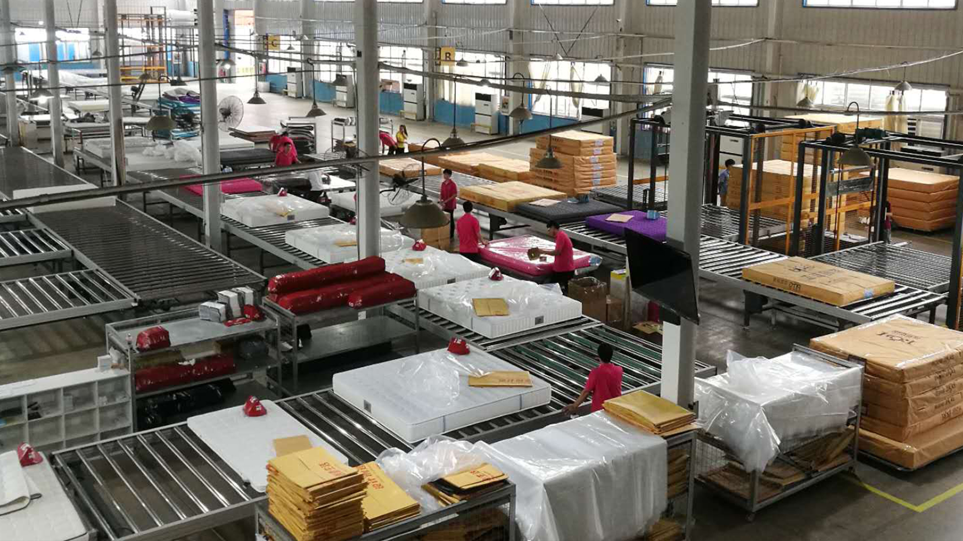 本机主要用于席梦思床垫上、下面料与侧面围边料之间的缝制工作。本机具有机头仰角调整、机头升降调整、缝纫速度调整等特点。在缝制时由工作台输送带输送床垫移动进行缝制, 采用PLC程序控制及人工智能操作, 床垫在缝制中能自动行走, 自动转角, 自动翻转, 提高了缝纫速度。机头在缝制床垫转角处能自动升降、自动减速、自动复原、改善了缝纫质量, 解决了四角缝边内翘问题。床垫的缝制只需一人操作, 提高了工作效率又减轻了劳动强度, 是高档床垫制造及流水线生产的理想设备。