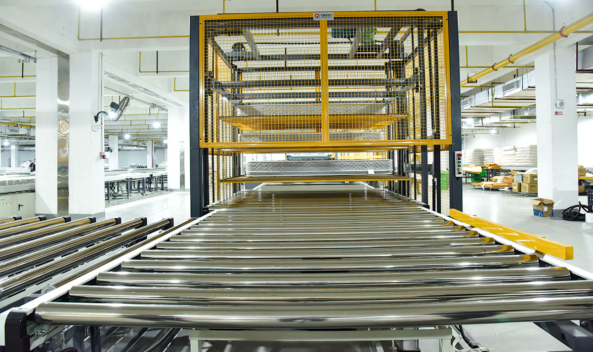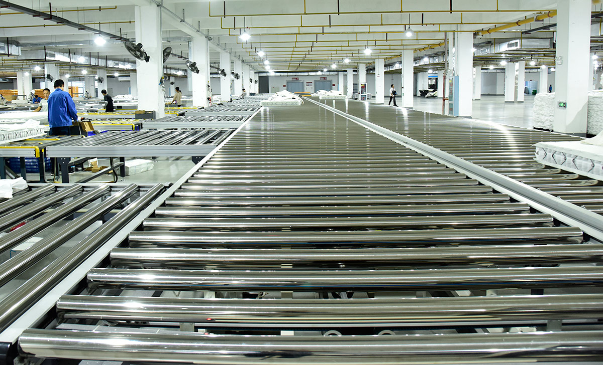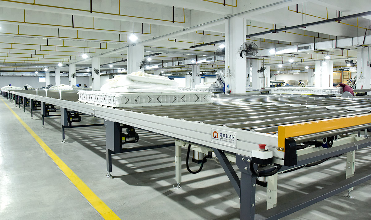 巨林智能滚筒输送线可以进行电脑控制,无需大量的操作人员,为企业生产厂家减少劳动力,起到事半功倍的效果。全自动化床垫流水线设备以数字化及智能化为核心技术,用巨林智能滚筒输送线来进行物料的输送,带领各大床垫生产企业达到最佳的经济效益。