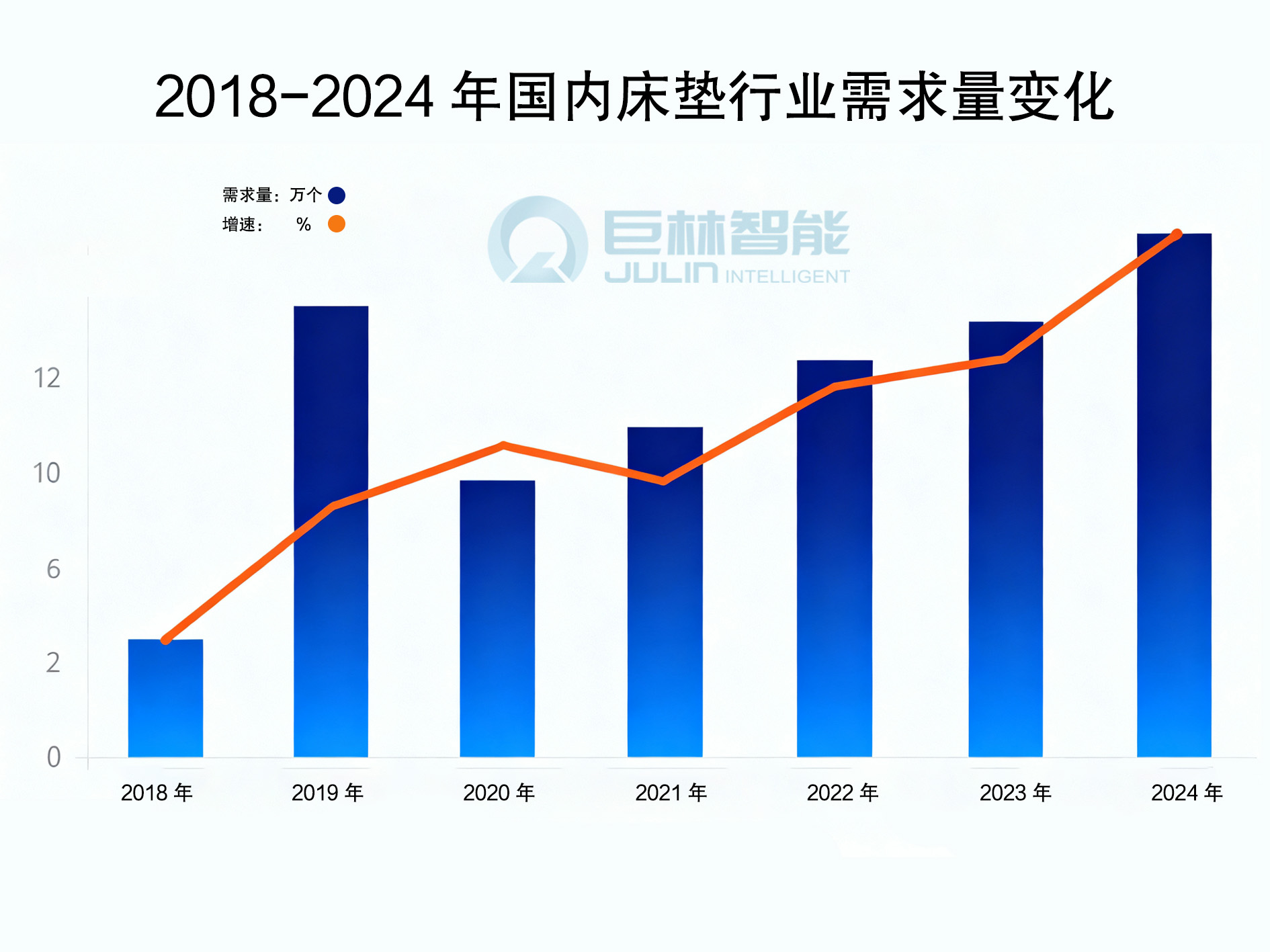 近年来,我国床垫行业需求量呈稳步增长态势,2024年全行业需求量达14001万个。一方面,城镇化进程加速推进与居民收入水平稳步提升,为市场注入大量新增消费群体,同时激发现有消费者的产品升级需求;另一方面,年轻一代对睡眠舒适度的更高追求、对个性化睡眠体验的探索,成为拉动床垫需求增长的关键动力。