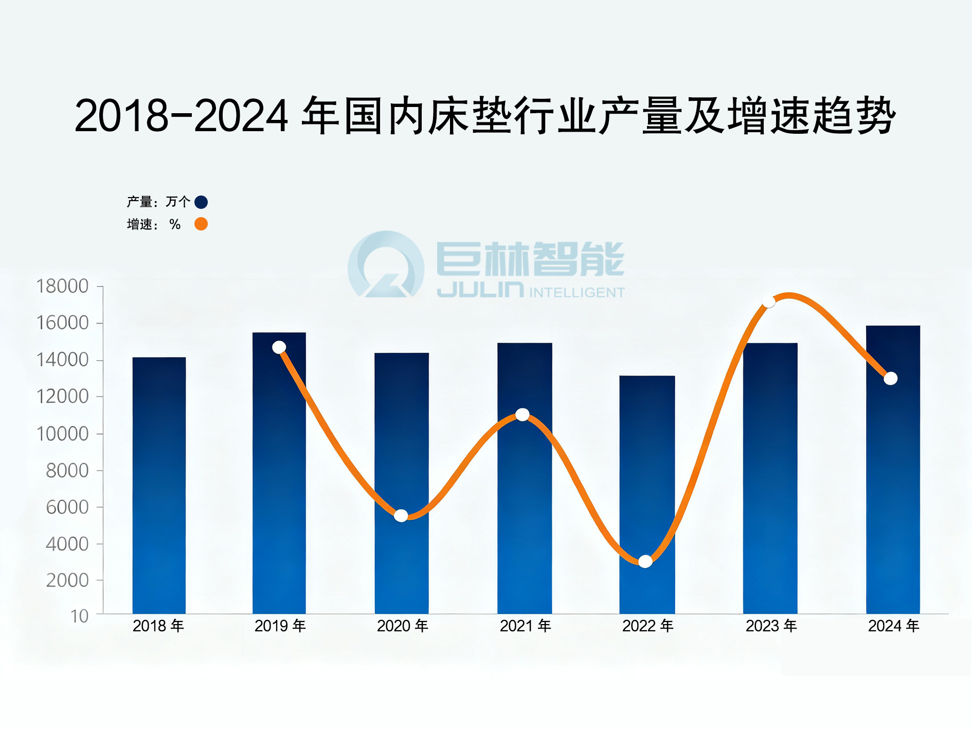 在我国民用床垫市场发展进程中,长期以来,炕、棕榈、草席、木板等传统硬床占据主流,是多数家庭睡眠场景的首选。随着科技迭代升级,床垫“填充层”品类不断创新突破,从传统材质向新型材料拓展,为消费者打造更贴合个人需求的个性化睡眠体验。行业数据显示,2024 年我国床垫行业产量达15422万个,较上年实现5.93%的同比增长,直观印证行业蓬勃发展活力与强劲市场潜力。